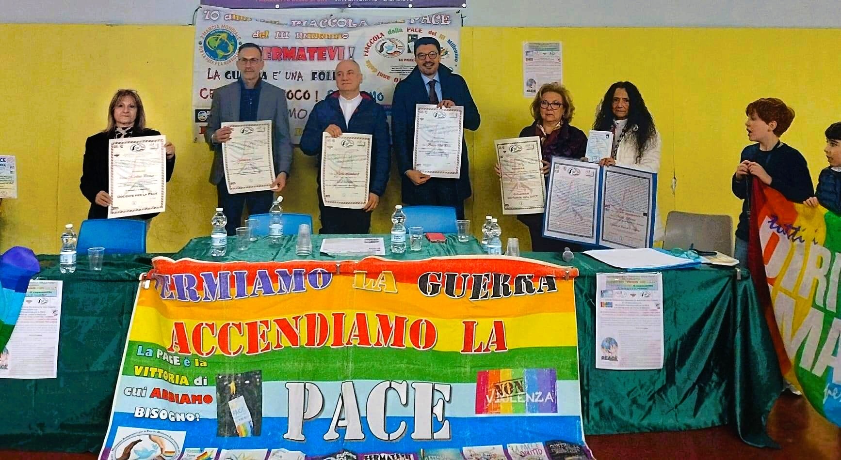 Presenti il viceprefetto Del Prete, don Lombardi e don Marotta. Messo a dimora il 1° Albero della Pace dedicato a Mons. Nogaro. Siglato il patto di impegno per la Pace con nomina di “Scuola di Pace”.