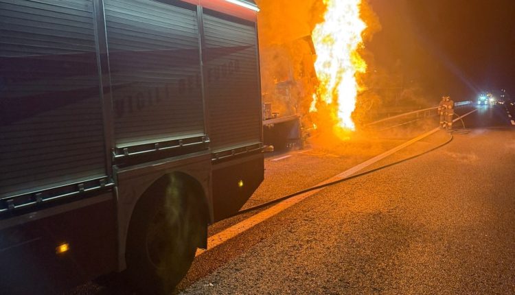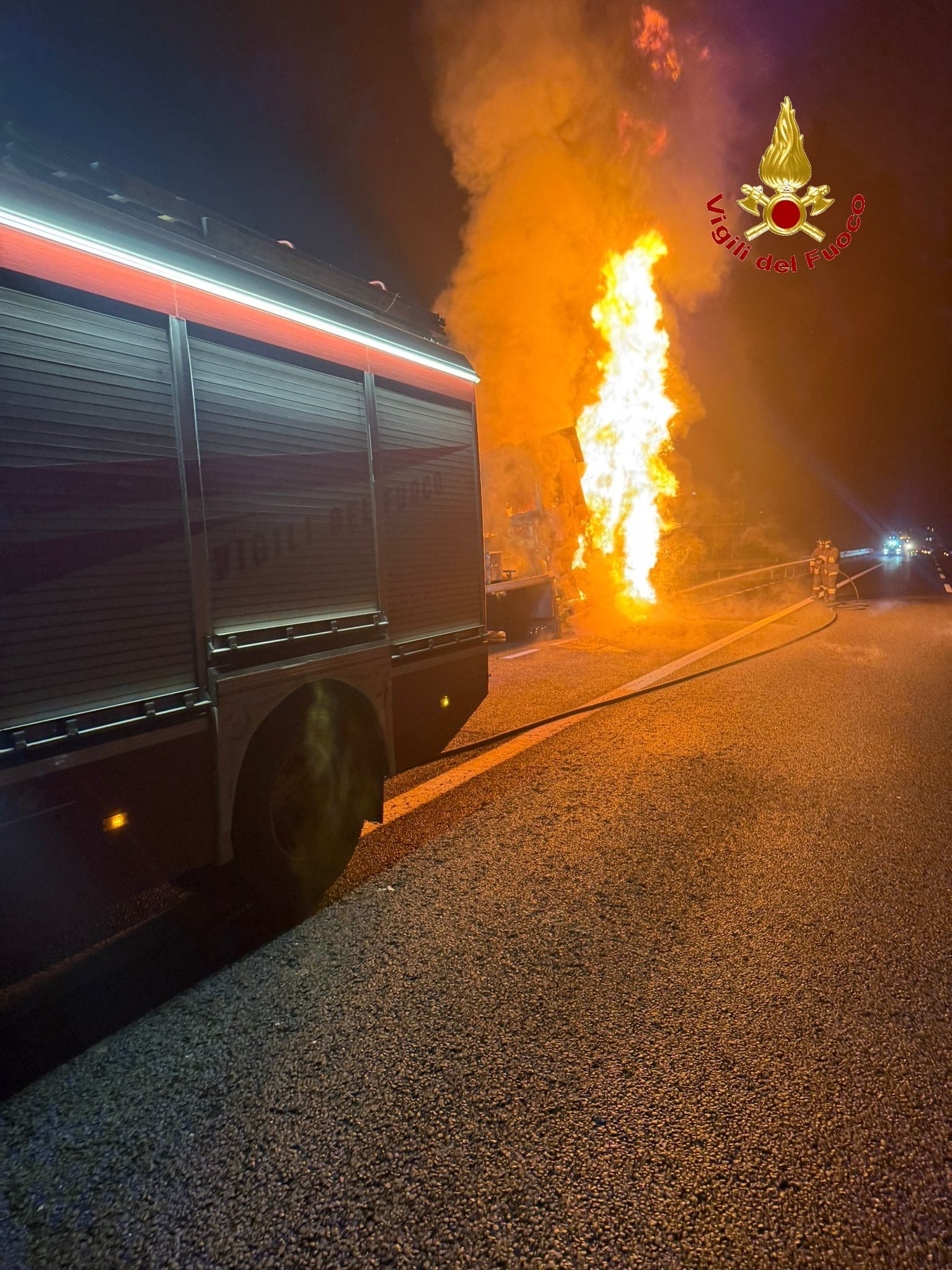 Questa mattina, verso le ore 03:00, una squadra dei Vigili del Fuoco del Comando provinciale di Caserta, proveniente dal distaccamento di Teano, è intervenuta sull’autostrada A1 , km 672 in direzione Roma , per un incendio che ha interessato un autoarticolato adibito al trasporto di veicoli. Al loro arrivo sul posto il mezzo pesante, fermo sulla corsia di emergenza, era completamente avvolto dalle fiamme che avevano interessato anche una motrice caricata sul veicolo. L’incendio è stato subito spento dai Vigili del fuoco ed in supporto alla squadra è intervenuta anche una squadra del Comando di Cassino con un’autobotte. Nessuna persona è rimasta coinvolta.