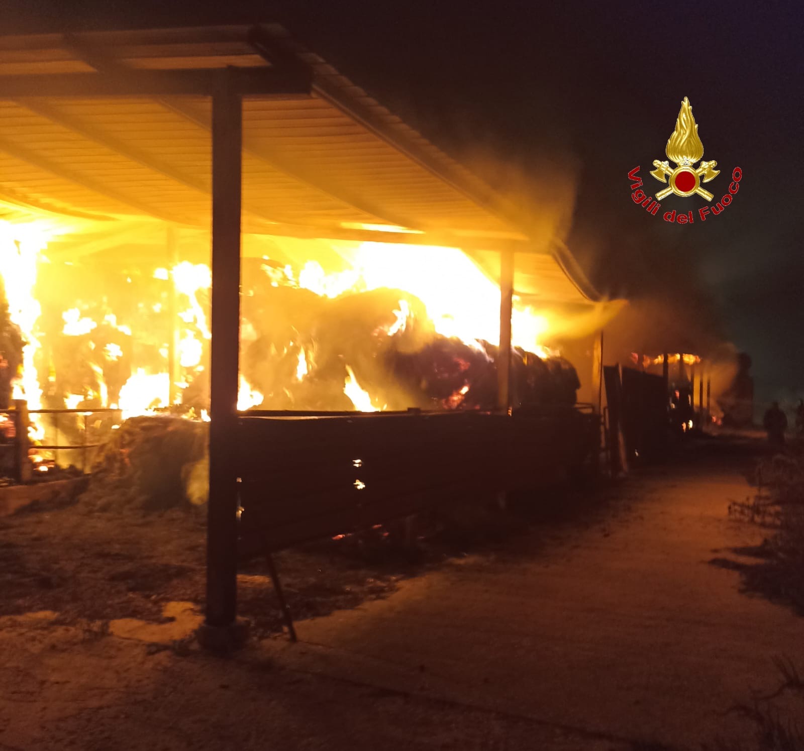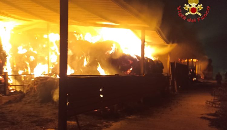 Le fiamme hanno interessato circa quaranta rotoballe di fieno stipate all’interno di un capannone di circa 600 mq. L’intervento coordinato delle squadre ha permesso di circoscrivere rapidamente il rogo e di portarlo sotto controllo, evitando ulteriori danni alle strutture circostanti.