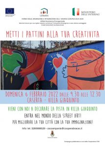 Sabato 5 febbraio, a partire dalle ore 9:30, saranno coinvolti nella raccolta delle arance amare promossa dal comitato per Villa Giaquinto. Si tratta di una iniziativa di solidarietà, che fa parte di una più ampia campagna di gestione dal basso dei beni comuni, finalizzata a rendere fruibile a tutti un parco pubblico. Domenica 6 febbraio, sempre alle ore 9:30, spazio alla creatività con la realizzazione di un murales lungo le pareti che costeggiano la pista di pattinaggio. All’iniziativa, promossa dalla cooperativa sociale ‘Credito senza confine’ – di cui è referente Hasnae Guettaya – parteciperanno anche gli Scout di Caserta che svolgeranno attività di animazione e intrattenimento. Saranno presenti anche alcuni rappresentanti del Comune, in qualità di ente capofila del progetto LGnet, finanziato dal Ministero dell’Interno. ‘Metti i pattini alla tua creatività. Migliora la tua città con la tua immaginazione’, questo lo slogan dell’evento che vedrà grandi e piccoli, italiani e stranieri, cimentarsi con la street art. Due iniziative di grande impatto sociale che consentiranno ai minori stranieri non accompagnati che vivono a Caserta di fare un ulteriore passo in avanti sulla strada dell’integrazione e dell’inclusione sociale per sentirsi parte attiva della comunità e contribuire alla crescita e allo sviluppo del territorio. Proprio da loro, giovanissimi migranti che vivono e studiano a Caserta, è partito in queste ore l’appello alla cittadinanza a partecipare numerosa ai due eventi. Due grandi occasioni di dialogo, cooperazione interculturale e confronto.
