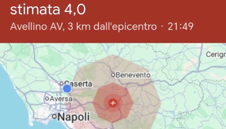CASERTA- Ore 21.49, avvertita forte scossa di magnitudo tra i 3,9 e 4,4 della scala Richter con epicentro a circa 3 km da Avellino, a Montefredane. Il terremoto è stato sentito in tutta la Campania, dalla provincia di Napoli a quelle di Salerno, Benevento e Caserta, generando il panico tra i cittadini. Si attendono ulteriori aggiornamenti.