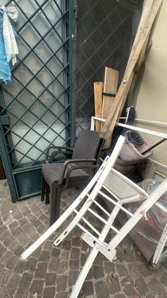 I giovani di cui sopra, a quanto pare in gruppi numerosi composti da alcune decine di ragazze e ragazzi, mangiano bevono e sporcano lasciando residui ovunque. Non soddisfatti abbastanza, distruggono puntualmente anche sedie, sgabelli e suppellettili varie. Dopo essersi nutriti, avendo la necessità di un bagno per espletare impellenti bisogni, hanno adibito a bagni all’aperto il palazzo vicino circondato da impalcatura che è diventato un vero e proprio ”cesso” .