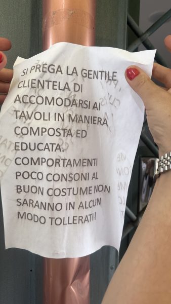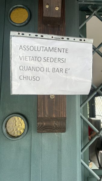 In particolare lo storico bar della piazza, “Il chiosco della nonna” che la sera, alla chiusura, lascia alcuni arredi perché inamovibili, con tanto di cartello che riportiamo in foto di divieto di utilizzo nelle ore di chiusura, viene puntualmente vandalizzato.
