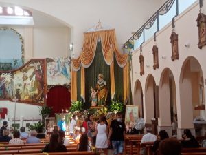 La chiesa, oggi più che mai, era ghermita di fedeli in venerazione della santa e dai volontari del comitato con le divise verdi intenti nell’organizzazione. Oggi alle 19 30 da non perdere la benedizione all’esterno del santuario a tutte le partorienti