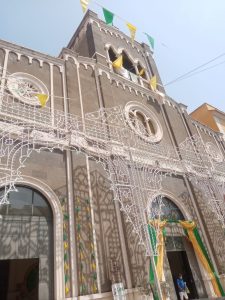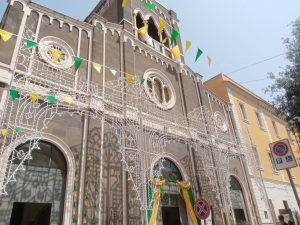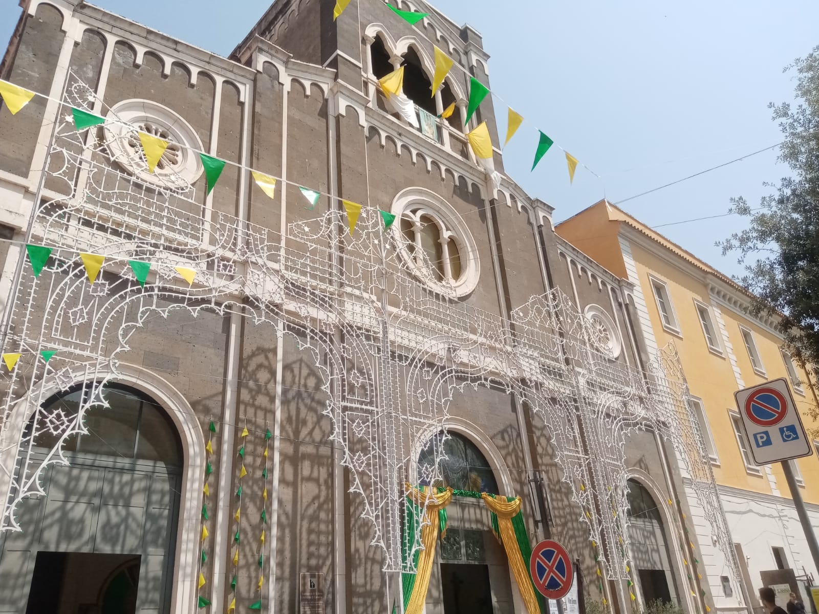 Caserta- Il Santuario dedicato alla santa patrona della città è stato allestito con amore dai volontari sia all’interno che all’esterno con i nastri verdi e gialli tipici della tradizione.