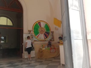 All’entrata un banchetto allestito da una volontaria che si occupa della vendita di braccialetti e oggetti artigianali dei quali il devoluto sarà dato in beneficenza.