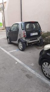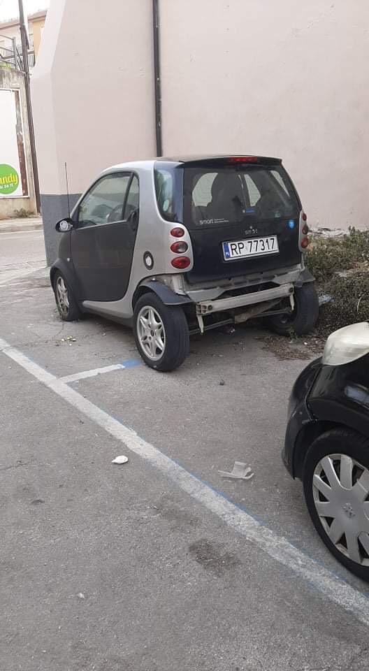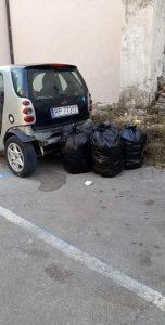 Foto reportage. Auto abbandonata, ingombranti e rifiuti arredano un piazzale nel centro della città