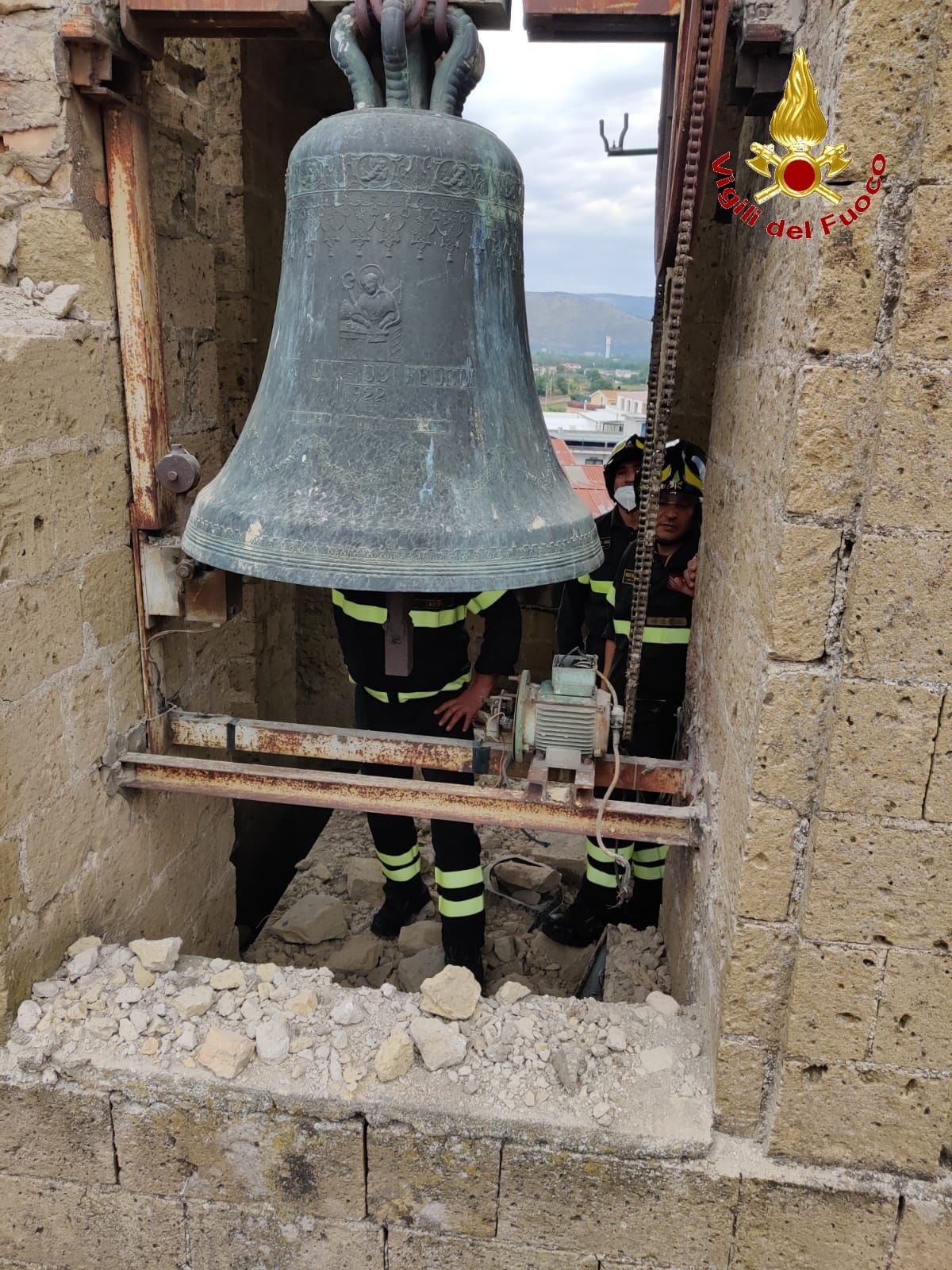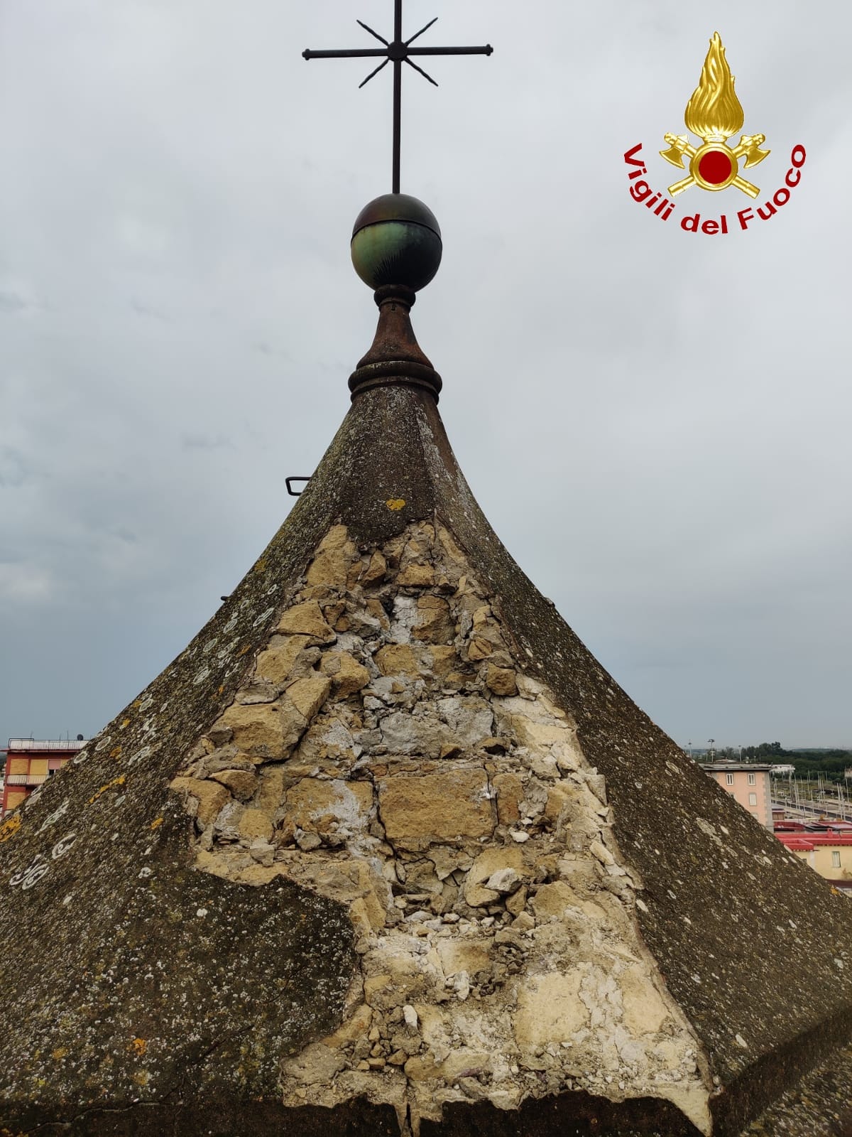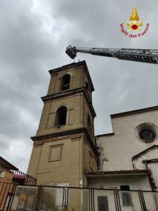 San Felice a Cancello. Questa mattina verso le ore 09:00 una squadra dei Vigili del Fuoco del Comando provinciale di Caserta proveniente dalla sede centrale è intervenuta in via Napoli nel comune di San Felice a Cancello presso la chiesa di Sant’Alfonso Maria dei Liguori a causa di un fulmine che si era abbattuto sul campanile della chiesa. Arrivati sul posto i Vigili del Fuoco hanno constatato che il fulmine aveva danneggiato parte della copertura in muratura del campanile alto circa 20 metri e la campana. Sul posto è intervenuta anche un’autoscala, proveniente sempre dalla sede centrale del Comando, che ha dato supporto alla squadra nelle operazioni di rimozione delle parti pericolanti e messa in sicurezza della struttura.Chiuse alla viabilità le strade adiacenti la chiesa.