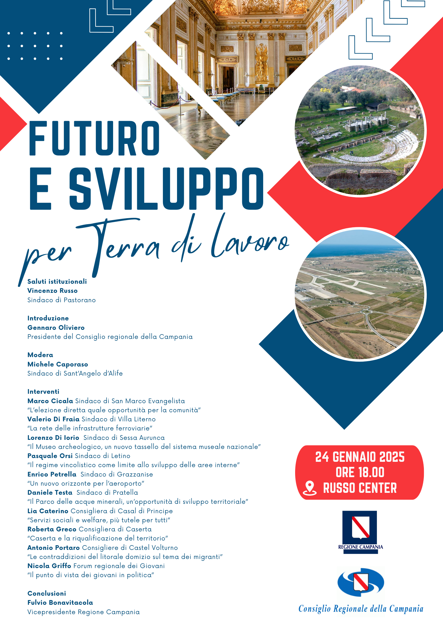 • Enrico Petrella, Sindaco di Grazzanise, interverrà su “Un nuovo orizzonte per l’aeroporto”.