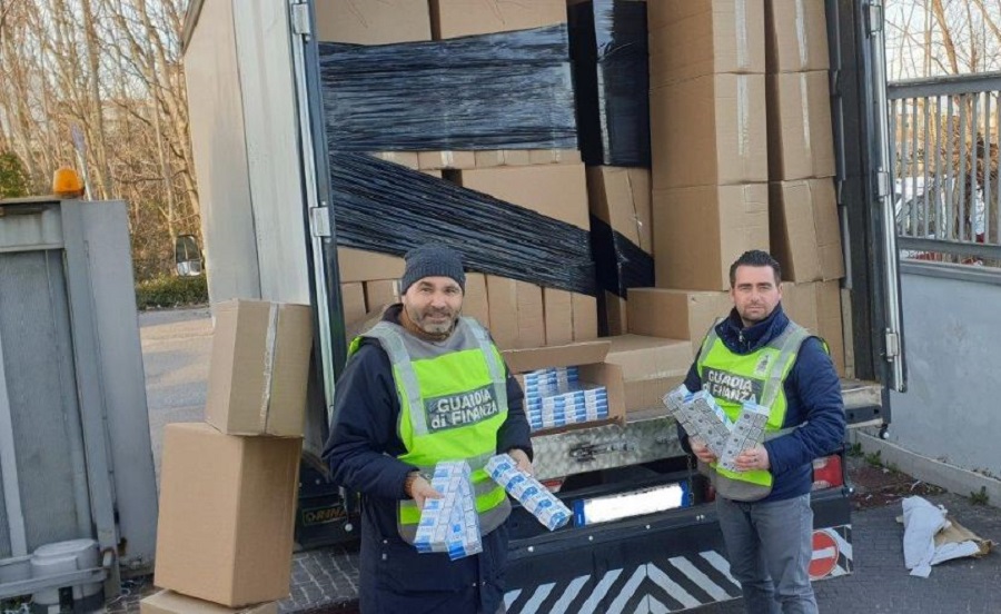 AVERSA – Si è conclusa con il sequestro di oltre 9 tonnellate di sigarette di contrabbando e con l’arresto di un responsabile, un’operazione anticontrabbando condotta dalle Fiamme Gialle aversane nell’agro di Somma Vesuviana. Nel pomeriggio di giovedì, 27 febbraio 2020, i militari della Compagnia di Aversa hanno, infatti, pedinato un camion telonato condotto da un contrabbandiere già noto alle Fiamme Gialle fino ad un deposito in aperta campagna da dove poi usciva, all’apparenza estremamente carico, in modo repentino.