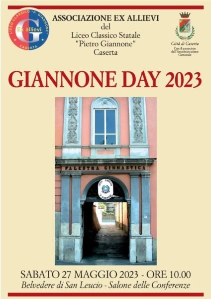 Promosso dall’Associazione ex Allievi del Liceo Classico Statale “Pietro Giannone” di Caserta; si terrà domani, sabato 27 maggio, alle ore 10, presso il Complesso Monumentale del Belvedere di San Leucio, il “Giannone Day”.