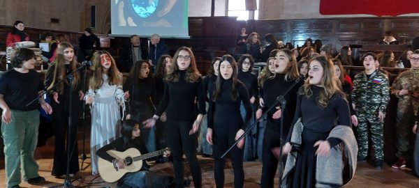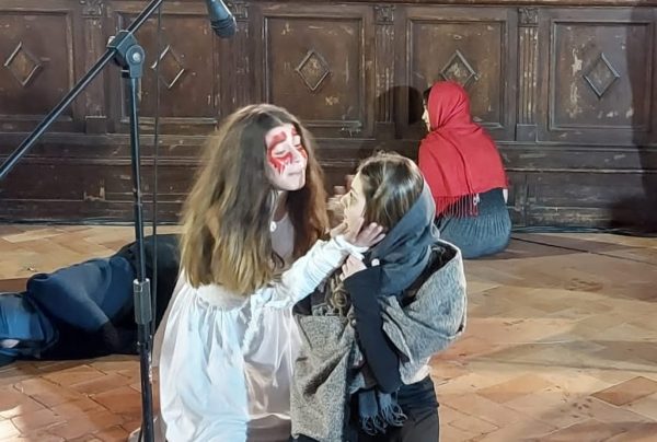 IL CORO RECITA ALL’UNISONO CON GRANDE EFFETTO SCENICO
