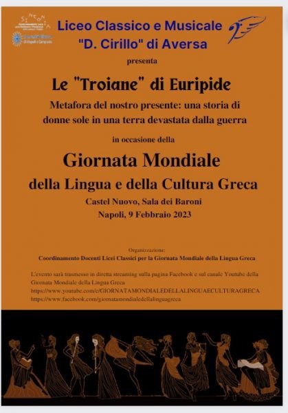 Aversa, Oggi la classe II E e alcuni allievi della IV E del liceo classico ind. comunicazione “Domenico Cirillo”(DS Luigi Izzo) ,accompagnati dalla loro docente di greco Giovanna Vaccaro, hanno partecipato alla Giornata mondiale della lingua greca, presentando una propria versione delle Troiane di Euripide, che sono metafora del nostro presente, perché dimostrano l’insensatezza di una guerra, simbolo di ogni guerra. Ovunque è desolazione e morte. Sulla scena il coro è costituito da tutte le donne troiane vedove e destinate a diventare schiave dei Greci, compresa la regina Ecuba, disperata per la distruzione della sua città. Accanto a lei Andromaca con i suoi struggenti lamenti ed Elena, sempre più sfrontata. Potente l’esortazione al pubblico di Cassandra, in preda al furore:”Deve evitare la guerra chiunque abbia senno”. L’ignobile uccisione del piccolo Astianatte, figlio di Andromaca, diventa simbolo di tutti i bambini vittime della guerra. I soldati, in tuta mimetica, richiamano nei loro atteggiamenti coloro che continuano ad assumere un comportamento discutibile nei confronti dei prigionieri, violando il codice etico del combattente. La performance, con continui rimandi alla situazione attuale, tra parole, musica e immagini, si conclude con un noto inno alla pace, cantato da tutti i ragazzi :” Give peace a chance” di John Lennon.