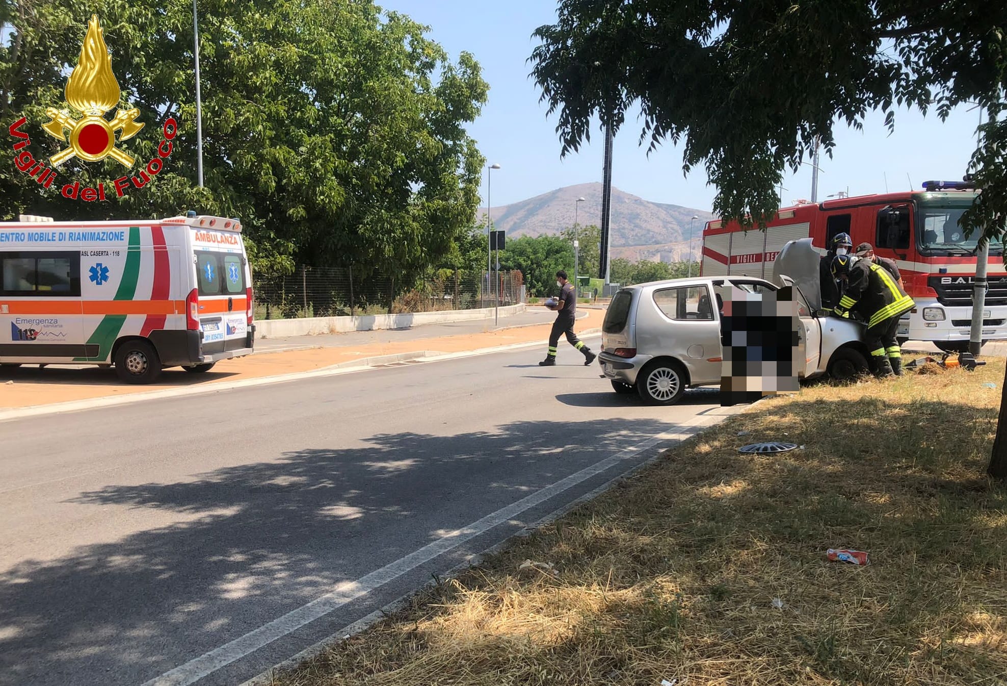 CASERTA. Ieri mattina verso le ore 12:15 una squadra dei Vigili del Fuoco di Caserta proveniente dalla sede centrale del Comando è intervenuta in via Scialla, nei pressi della villa Leonetti, allertati da alcuni passanti che avevano assistito ad un incidente stradale. Arrivati sul posto i Vigili del Fuoco hanno soccorso il conducente di un’ autovettura che , per cause da accertare, aveva finito la propria corsa su un’aiuola contro un albero rimanendo incastrato all’interno dell’automobile. Una volta aperta la porta del veicolo con l’attrezzatura da taglio in dotazione i Vigili del Fuoco hanno estratto l’occupante dall’auto, un giovane uomo della zona, affidandolo alle cure dei sanitari presenti sul posto con un’ambulanza.Successivamente si è provveduto alla messa in sicurezza del veicolo per la successiva rimozione.