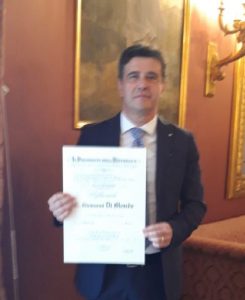 Di Monde, durante una sobria cerimonia, per la nota emergenza COVID, ha ricevuto l’Onorificenza dell’Ordine al Merito della Repubblica Italiana dal Dott. Marco Valentini, Prefetto di Napoli.
