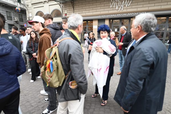È stato questo il manifesto-appello della manifestazione pubblica, lanciata dal direttore artistico Marisa Laurito, che si è tenuta oggi pomeriggio in piazza Vincenzo Calenda, dove è sito il Trianon Viviani.
