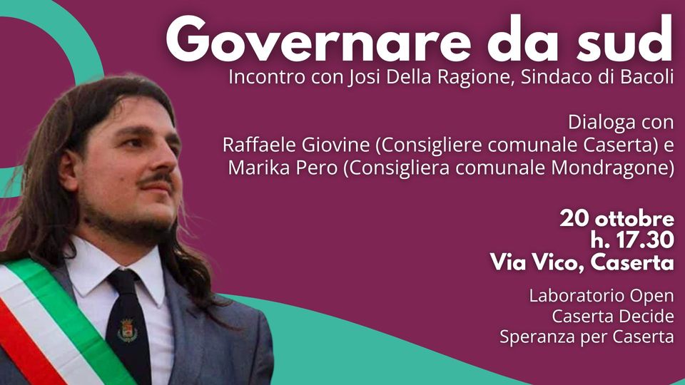 Alla scarsità di risorse opponiamo la ricchezza delle idee, delle buone pratiche e del buon governo. Contro la narrazione che vuole il Sud Italia sempre afflitto da una strutturale mancanza di organizzazione e di volontà di amministrare al meglio, contro gli effetti che inevitabilmente porterà l’attuazione della legge sull’autonomia differenziata, proponiamo un racconto fatto di esperienze, di impegno e di risultati. Il Sindaco di Bacoli dialogherà con Raffaele Giovine, Consigliere comunale di Caserta e Marika Pero, Consigliera comunale di Mondragone.