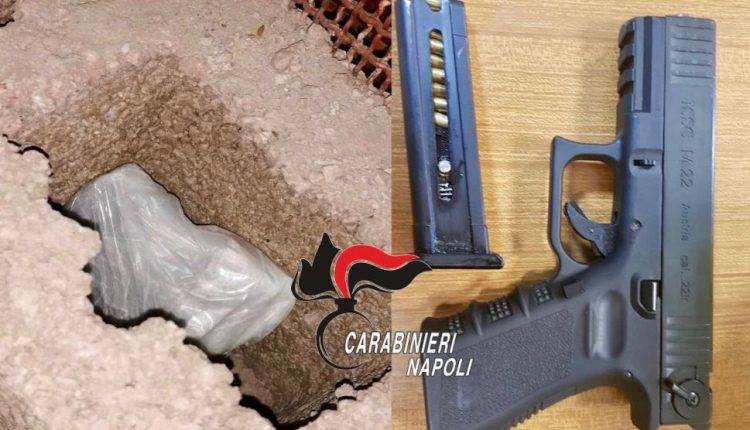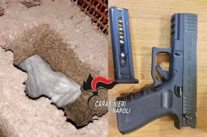 GRAGNANO (NAO – Una pistola ISSC calibro 22 con matricola abrasa e 9 colpi nel serbatoio, 5 grammi di cocaina in dosi e un bilancino di precisione. Questo è il bilancio delle perquisizioni svolte dai Carabinieri della stazione di Gragnano e del Nucleo Cinofili di Sarno nei condomini di Via Mandrio e Via Ogliaro.