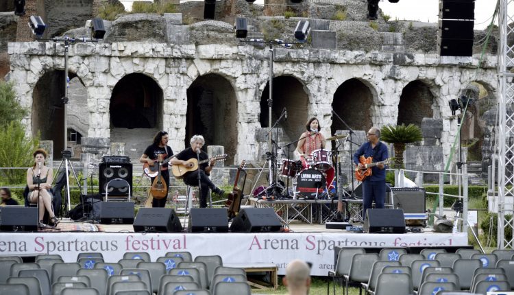 Santa Maria Capua Vetere. Ancora una serata all’ insegna della musica quella che si è consumata ieri nella suggestiva e meravigliosa location dell’ Anfiteatro di Santa Maria Capua Vetere. A dominare la scena dell’ evento ” La citta’ sotto la città” questa volta è stato Eugenio Bennato il quale ha entusiasmato i presenti con la sua musica. Il cantuatore napoletano ha proposto brani inediti e conosciuti del suo repertorio in larga parte ispirato al brigantaggio postunitario e alla questione meridionale.