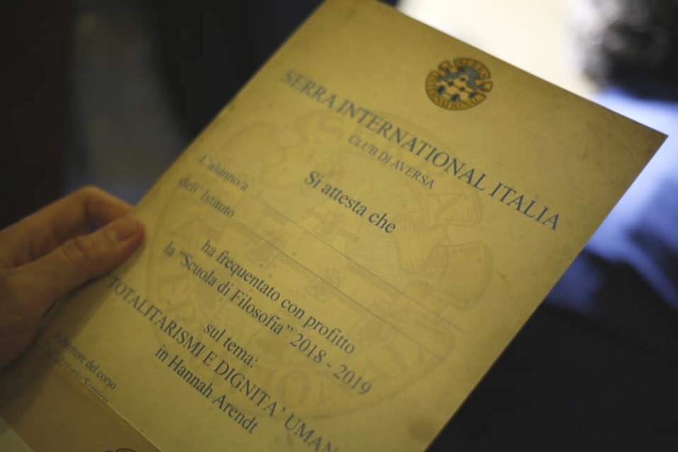 AVERSA. La filosofia diventa priorità aversana. Martedì 16 aprile, presso il seminario vescovile in Piazza del Duomo, si è tenuto l’incontro finale del progetto “Totalitarismi e dignità umana in Hannah Arendt” promosso dalla scuola di filosofia “Serra International Italia”.