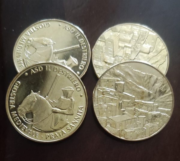 E’ stato introdotto anche il conio della MONETA, raffigurante su una faccia il logo dell’associazione con un cavaliere in tenuta da giostra, e sull’altra faccia una raffigurazione dell’ affascinante borgo medievale. tale moneta, dal valore simbolico durante la manifestazione, ma dal grande potere rappresentativo ed evocativo dovuto alla qualità della produzione, è stata curata dalla International Mint di Torino,