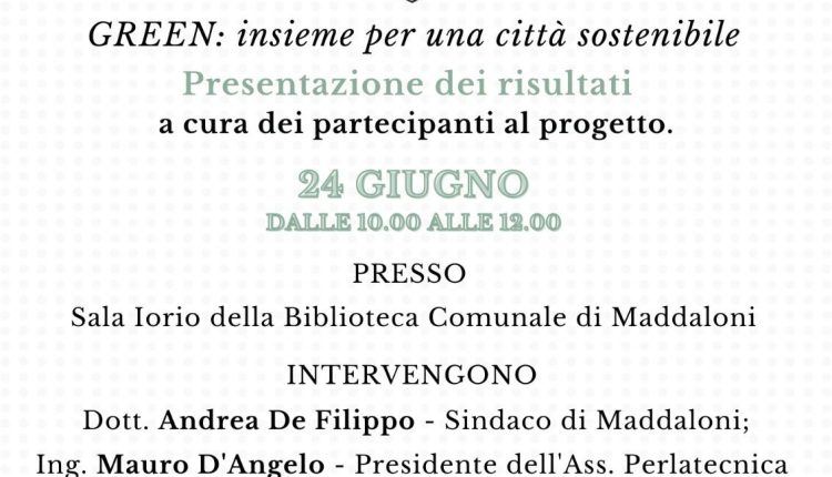 Maddaloni – Sabato 24 giugno presso la sala Iorio della Biblioteca Comunale di Maddaloni, si terrà l’evento conclusivo del progetto Erasmus Plus dal titolo “GREEN insieme per una città sostenibile”. L’evento rappresenta un’importante tappa di un percorso che ha coinvolto diverse realtà nazionali nella promozione di una città più verde e sostenibile.