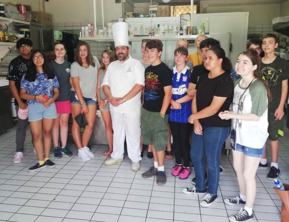 GRICIGNANO – Integrazione culinaria. Nella mattinata di lunedì 16 luglio 2018, numerosi studenti di diversi indirizzi scolastici interni alla base “U.S. Navy” di Gricignano di Aversa, sono stati accompagnati nel laboratorio della pasticceria “Conte”, in via Larga, di proprietà di Luigi Conte e Luigi Guarino. I giovani americani, accompagnati dall’interprete Tiziana Cirillo, hanno avuto l’opportunità di assistere alle fasi di produzione di alcuni dolci quali graffe, zeppole di San Giuseppe e la “polacca”, quest’ultima caratterizzante la tradizione aversana. Gli improvvisati pasticcieri hanno realizzato personalmente un gelato artigianale, utilizzando prodotti come semi di carrube, destrosio, latte, panna e frutta fresca. “Siamo felici di ospitare culture diverse nella nostra realtà imprenditoriale” – dice lo chef Luigi Conte – “Questi progetti fanno maturare i ragazzi dal punto di vista culinario, mettendoli a conoscenza delle tradizioni dei nostri territori. A loro, quando andranno via, resterà il ricordo della cucina italiana invidiatissima nel mondo”. Il prossimo 3 agosto 2018, la pasticceria “Conte” parteciperà, in partnership con la chef Maria Pastore di Anzano di Puglia (vincitrice del concorso “Dolce in Puglia” con il babà a base di semola ed olio d’oliva), all’evento “Panettone estivo” che si terrà a Sorrento nella spettacolare cornice dell’hotel Europa.