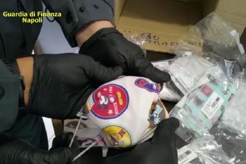 Le stesse Fiamme Gialle, inoltre, nel corso di una seconda operazione, hanno sequestrato, in un negozio di abbigliamento del quartiere Ponticelli di Napoli, 1700 capi di abbigliamento contraffatti e 4.000 mascherine per bambini non sicure, raffiguranti famosi personaggi di serie televisive, personaggi dei videogiochi e cartoni animati (“Disney” – “Narcos” – “Me contro Te” – “Supreme/Jordan” – “Fortnite”).