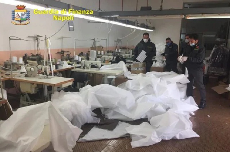 CASERTA – Il Comando Provinciale della Guardia di Finanza di Napoli, nel corso della mattina di domenica 31 maggio 2020, ha sequestrato nel corso di due diverse operazioni una fabbrica abusiva a Succivo, in provincia di Caserta, con 38mila dispositivi, tra mascherine, camici e tute antivirali, ed oltre 4.000 mascherine per bimbi non sicure e con loghi contraffatti in un negozio di abbigliamento a Ponticelli.