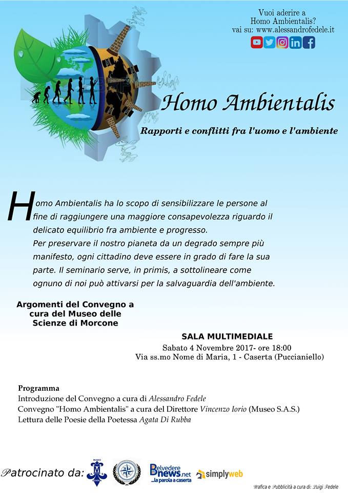 A parlare di ciò sarà Vincenzo Iorio, Direttore del Museo Delle Scienze di Morcone e noto nel campo della ricerca scientifica. Basterebbe l’impegno di ognuno di noi per ottenere l’inversione o l’attenuazione – dice il relatore – di questa tendenza che rischia di portare il genere umano verso l’estinzione. Ad organizzare il convegno è stato Alessandro Fedele, Socio Onorario del Museo e Redattore di BelvedereNews.