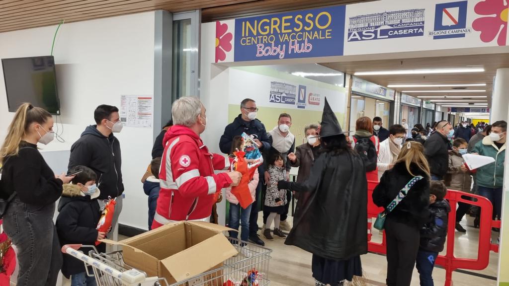 Caserta. E’ stata una graditissima sorpresa quella che hanno preparato i volontari della Croce Rossa -Comitato Caserta per tutti quei bambini che nella mattinata di oggi, giovedi 6 gennaio ,si erano recati all’ hub vaccinale dell’Iperion per farsi somministrare la loro dose di vaccino.