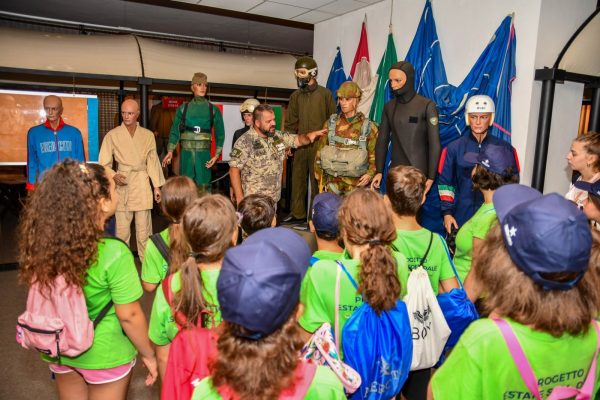 I partecipanti al Centro Estivo hanno avuto la possibilità di incontrare i militari del luogo in cui vivono e studiano, vedere da vicino i mezzi e gli equipaggiamenti in dotazione, la sala espositiva e i locali delle aree addestrative delle Caserme.