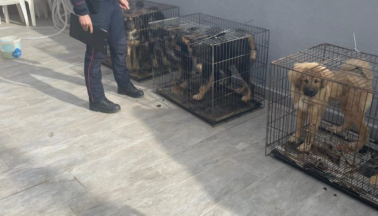 In particolare nel cortile dell’abitazione due cani: un Pastore del Caucaso ed un Mastino