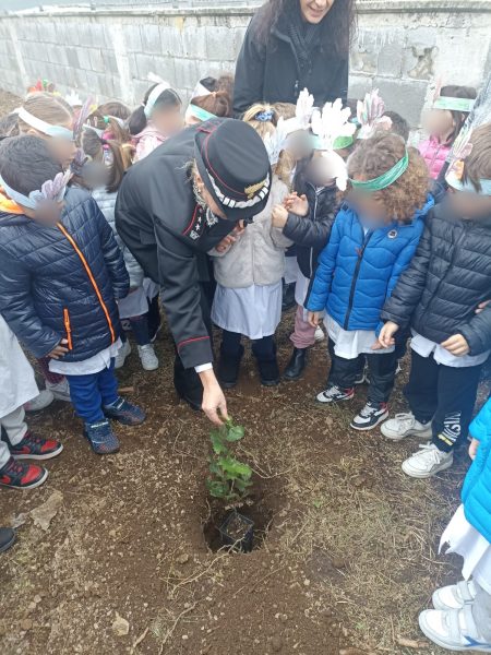 Oggi 23 novembre 2023, nei Plessi Collodi e Sede Centrale della Scuola dell’Infanzia dell’ I.C.A. Moro di Maddaloni, in occasione della “Festa nazionale degli alberi”, si è tenuta, alla presenza del Tenente Colonnello Marilena Scudieri dei Carabinieri Forestali di Caserta, accompagnata dal Brig.ca Salvatore Tramontano, la cerimonia di piantumazione di 2 alberelli, donati alla scuola dai Carabinieri della Biodiversità, in conseguenza dell’adesione al Progetto Nazionale di Educazione ambientale “Un albero per il futuro”, promosso dal Ministero dell’Ambiente e della Sicurezza Energetica, unitamente all’Arma dei Carabinieri.