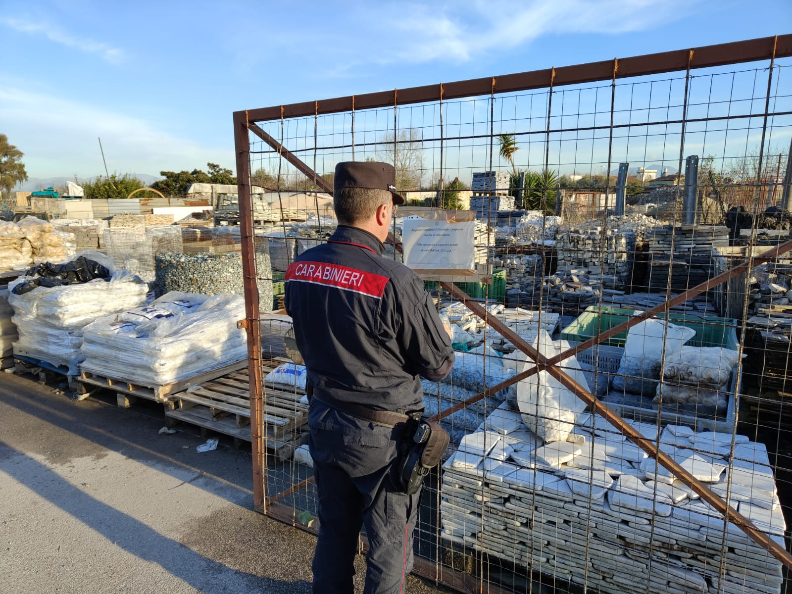 I Carabinieri Forestale di Marcianise (CE), si sono portati presso un deposito di rivendita di materiale edile localizzato in agro di Gricignano di Aversa (CE), laddove, sul piazzale scoperto, avente un’estensione di circa mq 420, oltre a materiali edili, sono stati rinvenuti diversi quantitativi di rifiuti speciali tra cui: traversine ferroviarie danneggiate; un cumulo di terra e cemento frammisto a pezzi rotti di basolame; 330 mc di basole in pietra presumibilmente provenienti da lavori di rifacimento stradale; un cumulo di circa 40 mc di rifiuti costituito da cubetti di porfido anch’essi verosimilmente derivanti da lavori stradali.