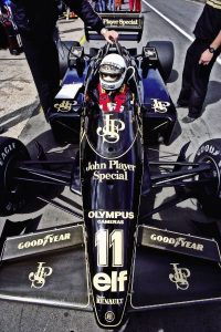 Il primo cavaliere nero su Lotus total black è certamente Ronnie Peterson che purtroppo ha fatto una brutta fine, morto a seguito di un tragico incidente in Italia a pochi metri dal via del Gran Premio di Monza, Ha trovato la morte il giorno dopo il Gran Premio d’ Italia del 1978, a seguito delle numerose fratture riportate in un incidente avvenuto alla partenza della gara. In seguito alla sua morte, la sua patria, la Svezia, proibirà corse di F1 sul proprio territorio nazionale, divieto tuttora in vigore.