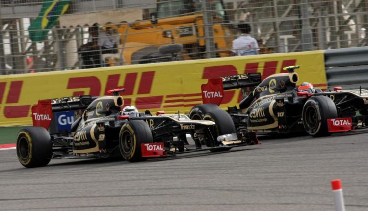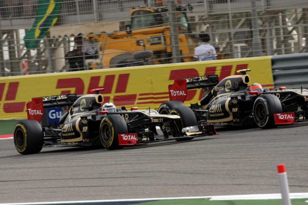 In the pic: Romain Grosjean (SUI) Lotus F1 Team E20 and Kimi Raikkonen (FIN), Lotus F1 Team E20