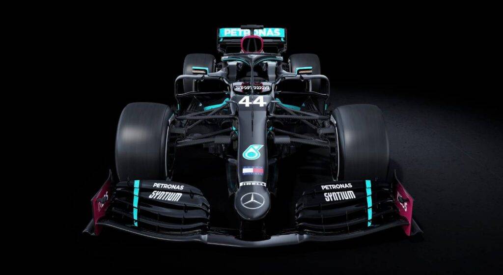 Infine impossibile non citare l’ ultimo cavaliere nero, il campione in carica per eccellenza, il cavaliere nero per eccellenza impegnato nella lotta al razzismo, scuro di pelle, su una vettura totalmente nera, la Mercedes Petronas che nelle due stagioni 2020 e 2021 ha abbandonato la classica colorazione grigio argento (ritornata però quest’anno).