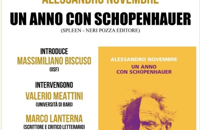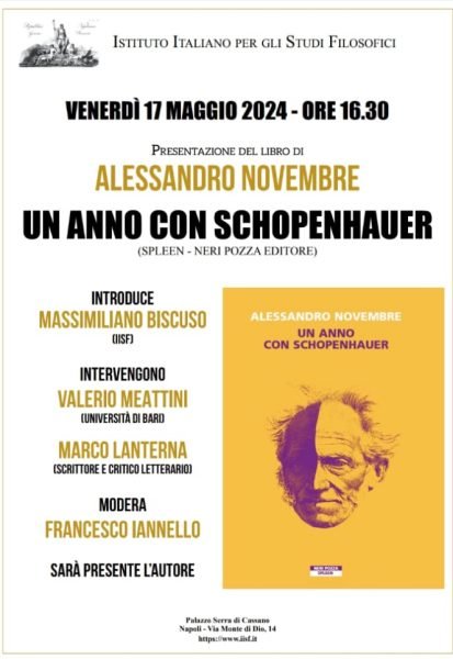 Venerdì 17 Maggio alle ore 16:30 sarà presentato a Napoli, presso l’Istituto italiano studi filosofici, il testo di Alessandro Novembre “Un anno con Schopenhauer”. Intervengono Valerio Maettini e Marco Lanterna, modera Francesco Iannello.