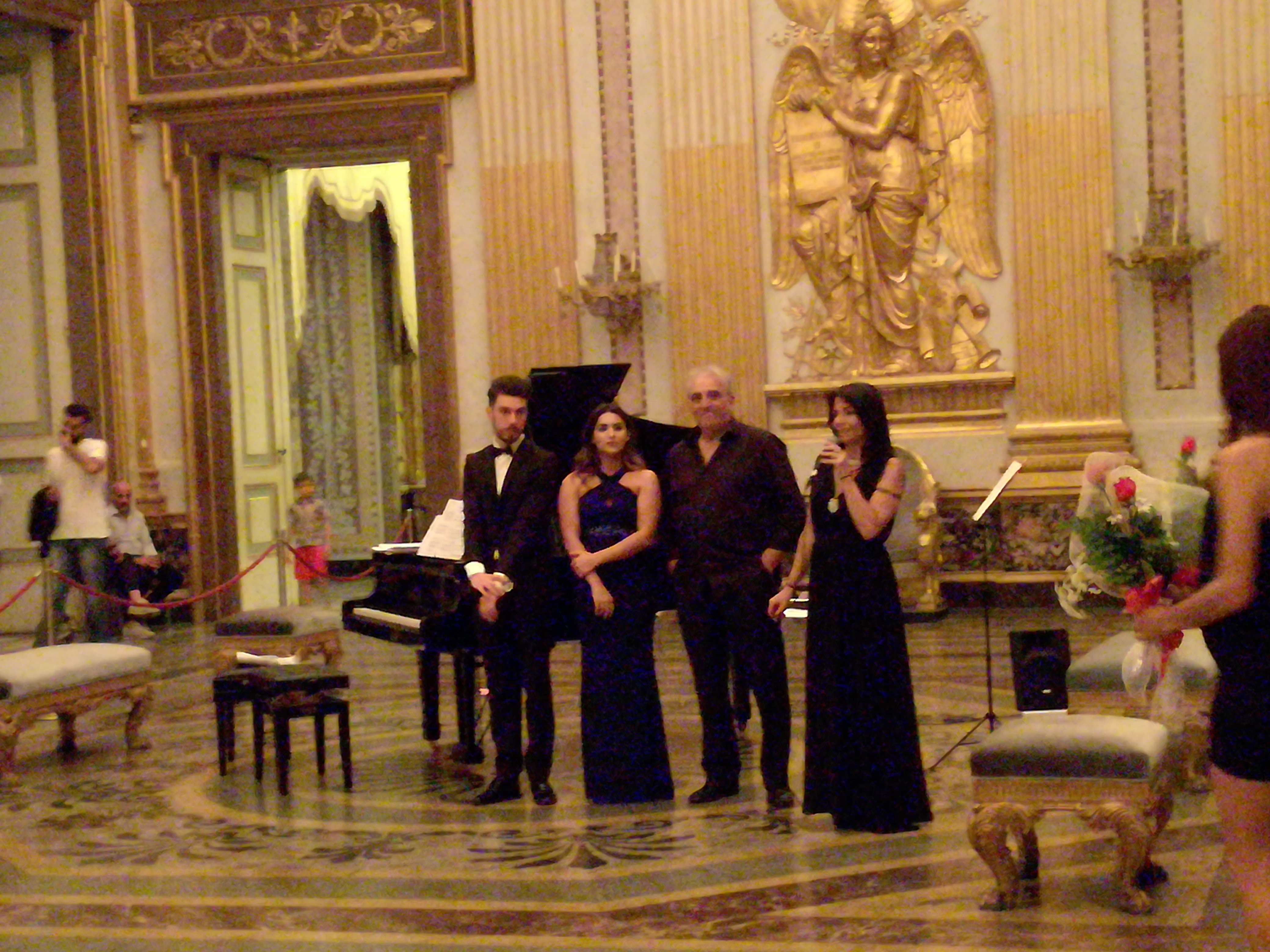 Caserta. Ieri sera, nella sala del trono presso la Reggia di Caserta, l’ensemble I MUSICI CAMPANI si è esibito in un meraviglioso concerto, da Bach e Vivaldi a Mozart, da Schubert e Schumann a Bizet e Shostakovich, da Donizetti a Puccini. Si è trattato di un concerto inserito in un programma di grande valorizzazione dell’arte all’interno della nostra Reggia. E questo sabato la gente poteva fluire all’interno degli appartamenti tra una mostra e l’altra, e proprio nella sala del trono, dove l’aria dorata di solennità circondava gli spettatori e gli esecutori, I MUSICI CAMPANI hanno riempito quell’immenso ambiente reale di una musica sublime. Al pianoforte Caterina Bernardo, fondatrice dell’ensemble e direttore del Dipartimento Artistico dell’Università Popolare di Caserta, al flauto Filippo Staiano, e come voci il soprano Maria Cenname e il basso Nicola Ciancio: questi i protagonisti del concerto di ieri sera. Musica pura è quella che ci hanno donato I MUSICI CAMPANI, una purezza che attraverso il suono era capace di penetrare nell’animo con un impatto che la bravura e professionalità degli esecutori rendeva ancor più incontaminata.