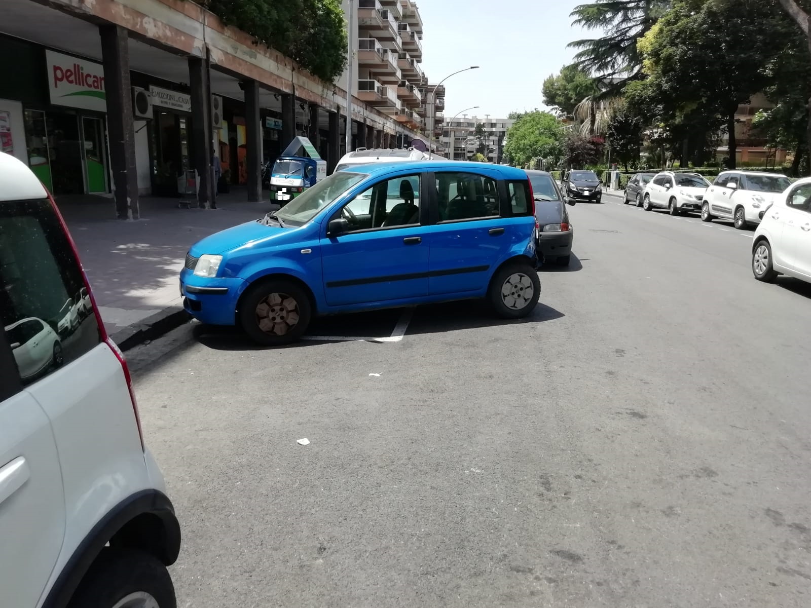È talmente consuetudine parcheggiare nei modi più imporbabili, che perfino su quelle poche strisce bianche che si posso incontrare le macchine sembrano sostare una addosso all’altra. Di tanto in tanto si assiste finanche alla sosta sui marciapiedi.