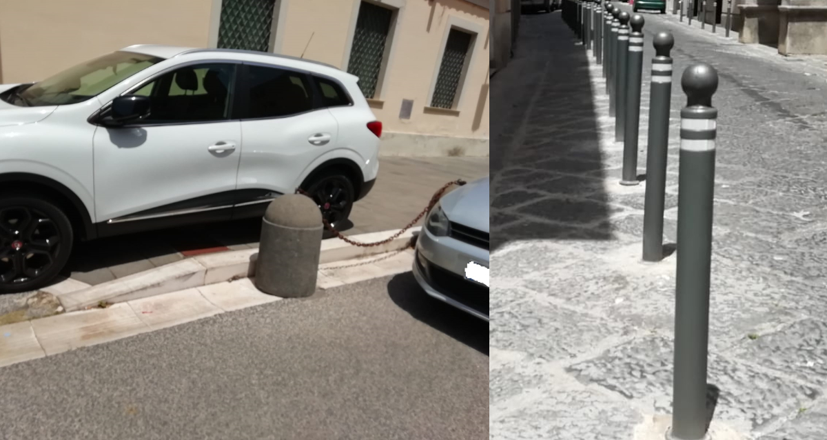 Con i paletti dissuassori perlomeno si è cercato di ostaolare chi sosta su strade strette come via Leonetti. Ora, perciò, Caserta sembra invasa da piccoli omini di ferro, con collarino rifrangente, che percorrono le strade storiche della città capoluogo di provincia.