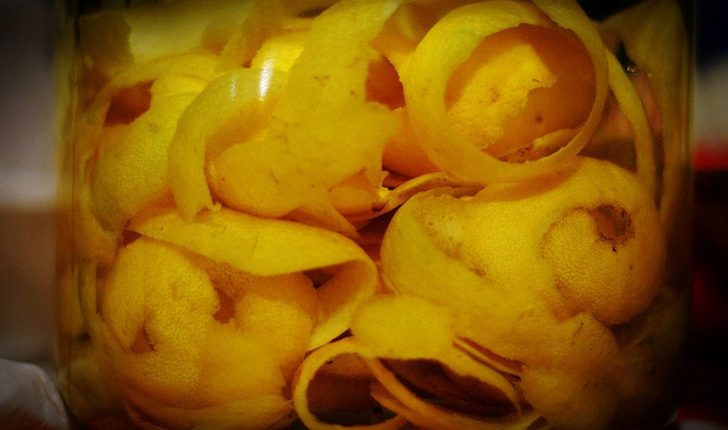 Mettete a macerare le bucce in un contenitore di vetro a chiusura ermetica insieme all’alcool; riponetelo in un luogo fresco e buio per 21 giorni, scuotendolo di tanto in tanto.