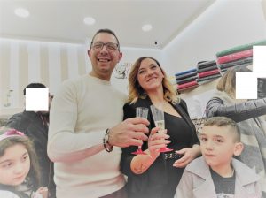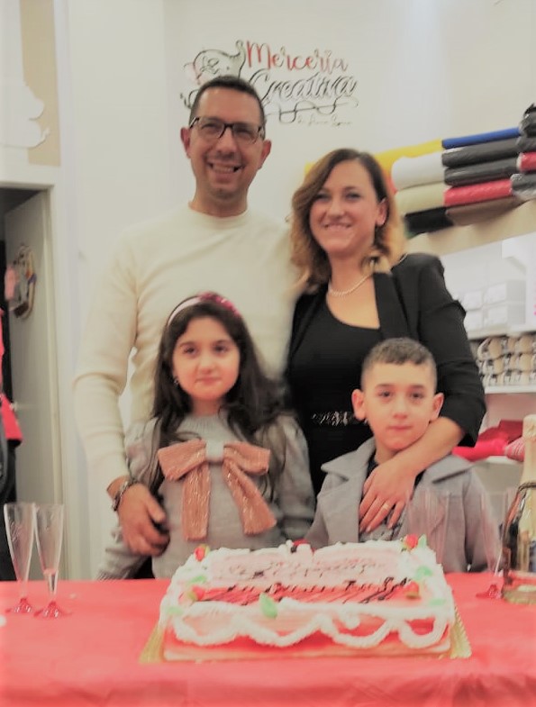 Anna: madre e moglie amorevole, tenace, accorta, grande lavoratrice. Ha frequentato l’Accademia delle Belle Arti. Agostino: padre premuroso, marito devoto, grande lavoratore, da tempo ha messo da parte il lavoro di Geometra ma, pur di assicurare ad Anna e ai figlioletti un presente decoroso e un futuro sicuro, attualmente si occupa della Sala presso una notissima Pizzeria di Gragnano (NA) dove quarant’anni fa nacque l’originale PANUOZZO. Giulia e Daniele: frutti del grande amore che lega Anna e Agostino. Per Anna suo padre, Sig. Alberto, sognava proprio quello che ieri, domenica 5 dicembre 2021, si è avverato: un laboratorio artigianale e artistico dove dar vita alla sua innata e preziosa creatività. Il caro Alberto ieri ha assistito alla realizzazione del sogno da lassù… Contornati dai familiari e dagli amici più cari Anna e Agostino hanno inaugurato in una via centrale di Scafati (SA) una MERCERIA CREATIVA con annesso Laboratorio Artistico che consentirà la realizzazione di manufatti accurati (tendaggi, lavori di ricamo artistico e tutto ciò che potrà rendere bella e accogliente la casa, l’abbigliamento e qualsiasi festa: battesimi, compleanni, etc etc, realizzati con cura e passione) oltre la vendita al dettaglio di tessuti e tutto ciò che serve entrando in