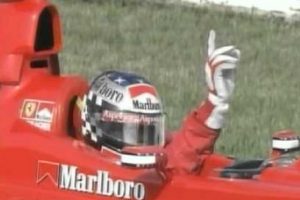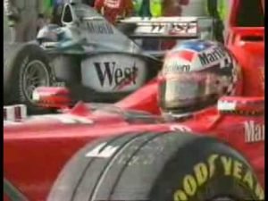 Anche qui rimonta furiosa strategia che ovviamente salta può essere bruciata tranquillamente già al via Schumacher salta 4 vetture, più lente ma comunque con una partenza fulminea si lancia all’inseguimento folle di Hakkinen che sotto sotto magari ride sotto al suo casco bianco azzurro che riporta i colori della sua amata Finlandia per questo regalo inaspettato che proprio il suo rivale gli ha servito su un piatto d’argento (guarda caso il colore della sua McLaren). La gara rimonta di Schumi a parte non offre emozioni anzi, risulta noiosa con il finlandese che davanti conduce, comanda e porta a termine senza patemi portandosi a casa il suo primo alloro con i colori dell’arcobaleno,