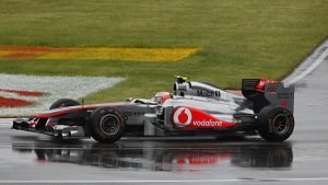 Gara sospesa – Rientra la safety car e le Ferrari ringraziano: nei primi quattro giri lanciati hanno perso 4 secondi da Vettel. Button, che deve scontare una penalità per violazione dei limiti di velocità in regime di safety car, si ferma ai box per montare le intermedie. È un rischio che sembra pagare, gira 3 secondi meglio dei primi. Al 18° giro il Cavallino si adegua e richiama anche Alonso. Ma due passaggi più in là, la pioggia si fa più forte, l’inglese e l’asturiano devono di nuovo montare le full wet, aiutati dal nuovo ingresso della safety car. Al 25° giro, la direzione gara ferma la corsa per due ore. Chissà se in quei lunghi minuti di attesa, a Button tornano in mente i suoi inizi a Frome, il primo test per la patente fallito perché è andato troppo vicino a una macchina parcheggiata, la via che gli hanno dedicato, l’accoglienza nella sua vecchia scuola dopo il titolo mondiale e quelle uniformi ancora sempre uguali, sempre quelle. Chissà se ripensa al Beetle di papà John che correva nei rallycross degli anni ’70 e l’ha chiamato Jenson in onore del suo grande rivale, Erving Jensen (la e diventa o per non essere confuso con la Jensen Motors). Finalmente si riparte, ancora tutti dietro la safety car per sei giri. La pista intanto si asciuga e molti si fermano per passare alle intermedie.