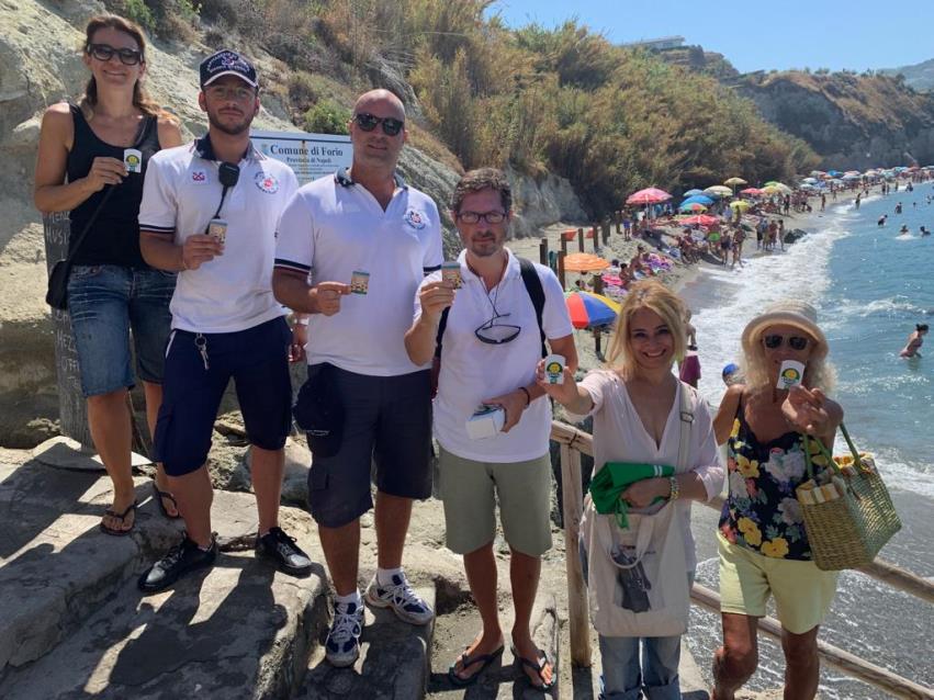 ISCHIA – Si è tenuto martedì mattina, 20 agosto 2019, presso la spiaggia di Cava dell’Isola a Forio d’Ischia il nuovo appuntamento dell’iniziativa “Ma la spiaggia non vale una cicca”, organizzato dai Verdi, con la distribuzione ai bagnanti di portacicche portatili.