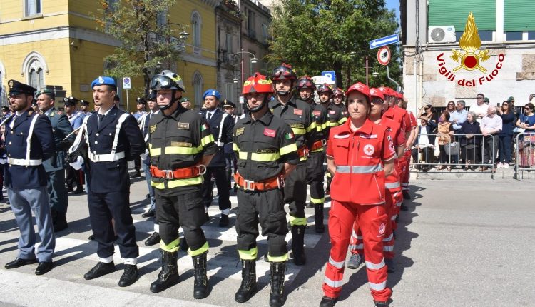 Intervenute davanti il monumento. I Vigili del Fuoco del Comando provinciale di Caserta oltre a partecipare alla cerimonia con un picchetto d’onore , hanno steso il tricolore sulla facciata del palazzo della prefettura sito in piazza Vanvitelli nel comune di Caserta.