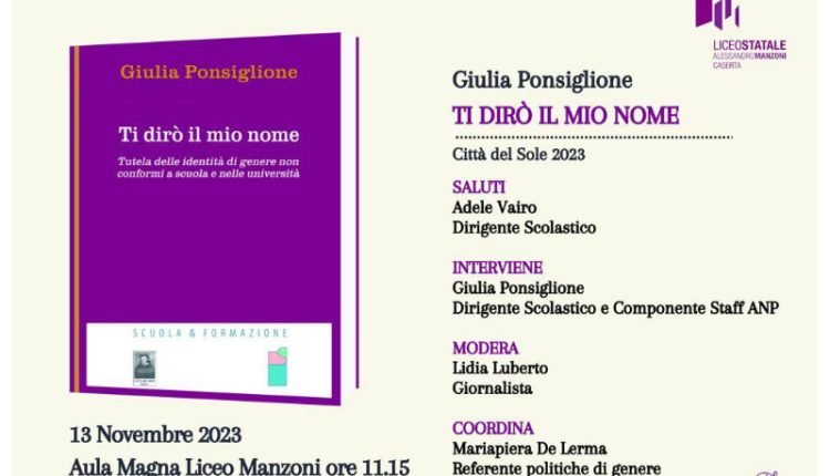 Identità di genere, mattinata di riflessione e condivisione al liceo Manzoni. Domani, 13 novembre , in Aula Magna, la presentazione del libro “Ti dirò il mio nome”