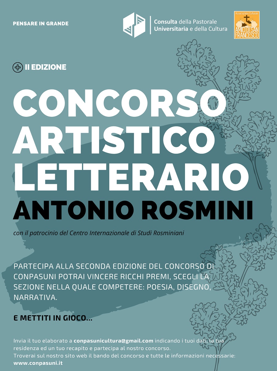 AVERSA – CONPASUNI e l’Associazione Amici di San Francesco presentano la II Edizione del Concorso Artistico-Letterario “Antonio Rosmini” della Diocesi di Aversa, con il patrocinio dell’Istituto Internazionale di Studi Rosminiani – Stresa.